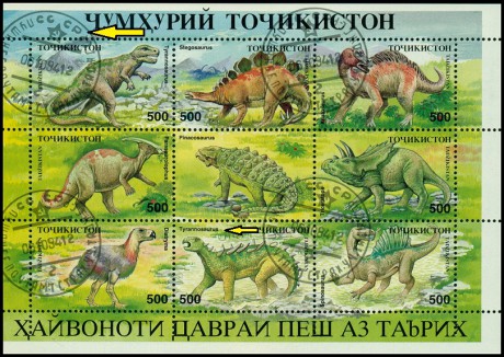 TÁDŽIKISTÁN. chybný popis jako Tyrannosaurus. mělo být Polacanthus