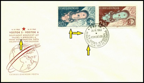 ČESKOSLOVENSKO. na přítisku FDC je chybně jméno Valerij V. Bykovskij